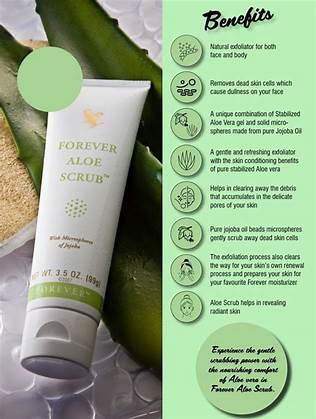 ترکیب دو ماده جوجوبا و ژل آلوئه ورا، با پاک کردن پوست، امکان فرایند نوسازی پوست را فراهم می آورند و در عین حال، از پوست در برابر خشک شدگی و آسیب های ناشی از پاک کننده های مصنوعی حمایت می کنند. اسکراب پوست فوراور، سلول های مرده را دفع می کند و آلودگی های موجود در منافذ ریز پوست را پاک می سازد و بدین طریق، ظاهر پوست را شاداب و خود پوست را سالم و نو می نماید.