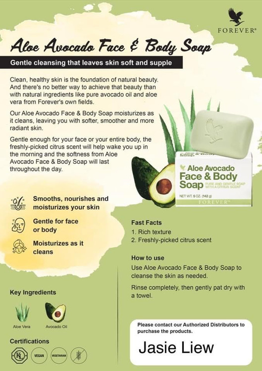 هم اکنون این صابون بی نظیر با ترکیب جدید آووکادو و آلوئه ورا از طریق نمایندگی فوراور ایران در اختیار شما عزیزان قرار داده شده است.